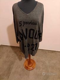 Maglia donna " 5 preview" grigia scritta nera 100% viscosa morbidissima black and White. Manica 3/4. Oversize.
