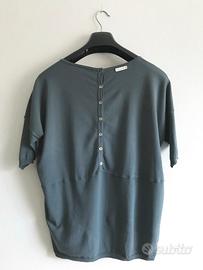 Maglia BREBIS NOIR color avio, con bottoni sul lato posteriore, taglia unica ma equivalente a una 46-48, nuova di zecca.