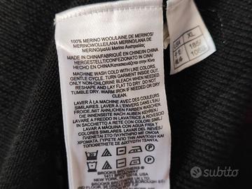 Maglia uomo a collo alto con zip, tessuto 100 % lana merino, in ottime condizioni, taglia XL, spalle cm 46, manica cm 70, lunghezza cm 76
