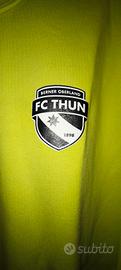 Maglia allenamento in tessuto invernale misto cotone poliestere del FC Thun, marca Russel, tg XL. Lo stemma del club davanti e la scritta sul retro FC THUN sono termo applicati in plastica sottile in rilievo. Il colore è un verde fluo. Articolo poco usato, è in ottimo stato generale e ben conservato.