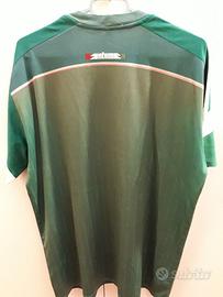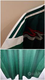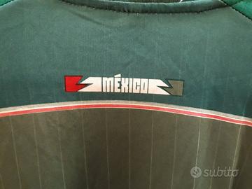 Maglia replica del 2014 del Messico, etichetta taglia non presente ma dovrebbe essere una XL (ascella 61 cm; altezza 79 cm circa). Articolo made in Messico, PRESENTA UN PUNTO LIEVEMENTE SCUCITO SOTTO ASCELLA SX (VEDASI TERZA FOTO). Le due bande laterali bianche lungo le spalle e maniche sono cucite sul tessuto. Il logo della federcalcio è ricamato in tessuto in rilievo e termosaldato. La scritta MEXICO sul retro sotto il colletto è serigrafata sul tessuto. Articolo usato è in ottime condizioni generali e ben conservato nonostante il difetto menzionato.