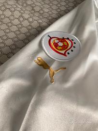 Maglia della nazionale italiana ispirata alla stagione *EURO 2004*, taglia XL. Tessuto tecnico con patch Europei e numero 10 sul retro. Etichette leggermente sbiadite per uso e lavaggio. Usata in buono stato, ideale per collezionisti Azzurri o tifosi di Francesco Totti.