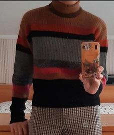 Caldissima maglia dolcevita a fasce colorate, in misto lana mohair-alpaca-polyamid.