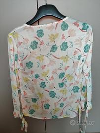 Blusa chiara con fiori di vari colori. Indossata una volta sola. Taglia XS larga, può essere indossata anche da chi porta una S.