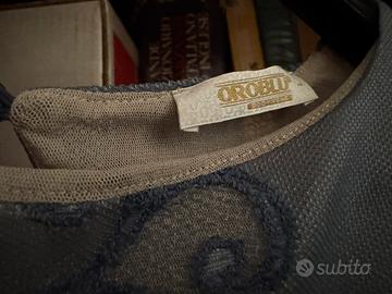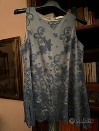 Maglia Canotta in tulle di puro pizzo azzurro/celeste, Oro blù, con sotto canotta in fresca viscosa color nudo. Taglia 42/44. Perfetta