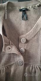 Originale cardigan a manichine corte, con scollo profondo, a 3 bottoni e una leggera arricciatura sui due lati al punto vita. Molto versatile, bellissimo con camicie oppure maglie dolcevita, con colori a contrasto. Regalo mai utilizzato, è nuovissimo, in perfette condizioni. È tg. 36eu, ma può andare anche a XS e S/40, ci sono le misure in foto.