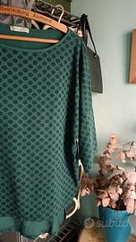 Deliziosa casacca con maniche tre quarti, colore verde scuro a pois neri