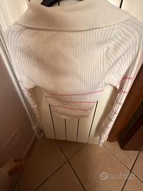 maglia a righe bianche e rosa, né troppo scollato né troppo corto