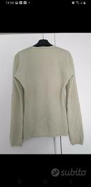 verde acqua, buonissimo stato eccetto un piccolo buchino sulla spalla come da foto, vendo con suo filo originale in modo da eseguire un rammendo perfetto (per chi è capace) solo per questo motivo chiedo modica cifra contando che 100% cashmire