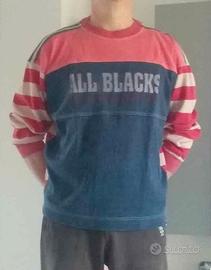 Maglia a maniche lunghe con design a blocchi di colore e maniche a righe. - Scritta All Blacks stampato sul petto. Maglia T-Shirt Uomo a maniche LUNGHE marca Clark - Taglia L - Abbigliamento Uomo Primavera Estate. In Cotone aspetto Vintage slavato, con scritta All Blacks sul davanti - Misura dal collo alla base cm. 68 circa - Usato in ottime condizioni. P.S. Consiglio sempre spedizione IN POST e BRT se disponibili, ma ovviamente lascio libera scelta. #abbigliamento #uomo #maglia #maglietta #tshirt #tagliaL #manichelunghe #primavera #estate #sport #sportivo #casual #clark #cotone