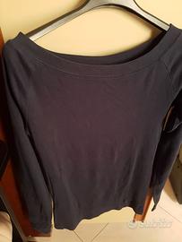 Maglia color BLU con collo a barca Maniche lunghe cotone 100% TG L Misure: da ascella ad ascella 61 cm. spalla ad spalla 42 lunga 60 cm. manica 60 cm.