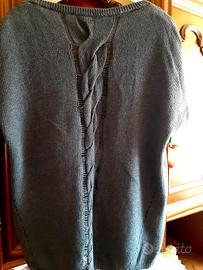 Maglia colore blue denim scolo a V ottimo stato, con bellissima lavorazione a trecce sul retro, taglia 3 francese corrisponde ad una M/L