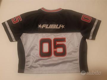 vendo maglia donna corta (si vede l'ombelico), colore nero, grigio argento e rosso. taglia M americana quindi veste un po' più grande. FUBU è una marca americana di streetwear/ hip hop