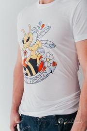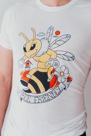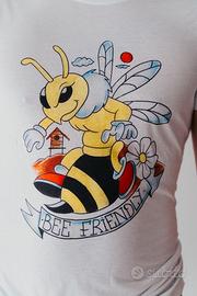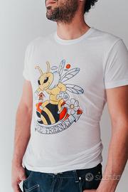 Maglia con logo ispirato al mondo delle api: il disegno e' stato realizzato interamente a mano