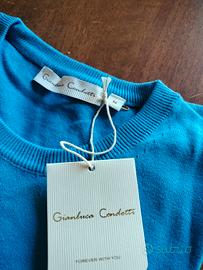Maglia 100% cotone girocollo marca "Gianluca Condotti" misura M colore blu, nuova con cartellino. Misure: ascella-ascella cm. 53 spalle cm. 42 lunghezza cm. 69