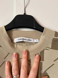 Maglia crop Calvin Klein a maniche lunghe Maglia crop a maniche lunghe firmata Calvin Klein, in tonalità beige/khaki con stampa all-over del logo “CK”. Modello aderente con girocollo e tessuto elasticizzato, comodo e valorizzante. Perfetta per outfit casual o streetwear, da abbinare a jeans a vita alta o pantaloni cargo. Dettagli: -Colore: beige con stampa logo marrone -Vestibilità: aderente / crop -Maniche lunghe -Girocollo -Tessuto morbido ed elasticizzato