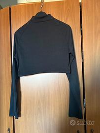 maglia crop nera a costine cerniera e arricciatura in vita mai indossata