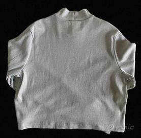 Vendo maglia a manica lunga, modello cropped, dal design moderno ed elegante, realizzata in tessuto a costine sottili con raffinato effetto metallizzato color argento, taglia L.