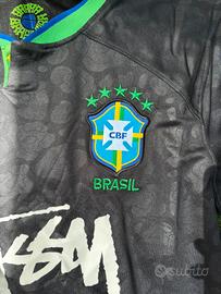 Maglia da calcio Stussy Brasil-Nera dettagli verdi