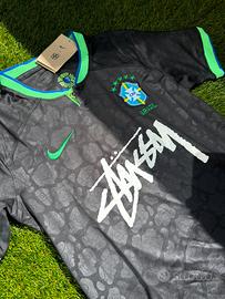 Maglietta da calcio della Stussy Brasil colore nero con dettagli verde Taglia: M sacchetto ed etichette incluse