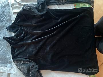Maglia da donna ciniglia collo alto maniche in pizzo nera marca oro blu