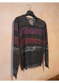 MAGLIA DESIGUAL COLORE GRIGIO ANTRACITE A FASCE VIOLA/BORDEAUX CON LIEVI SCRITTE