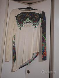 maglia cotone Desigual * manica lunga *taglio assimetrico * impreziosita da paiettes e perline *taglia 42/44 - M
