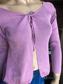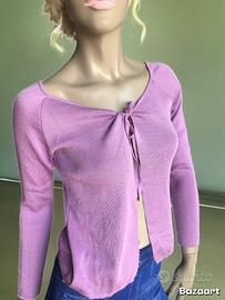 Maglia da donna con un design aperto e un pratico laccetto sul davanti per chiuderla. - Maniche lunghe. - Tessuto leggermente scintillante.g. -Taglia ( M )