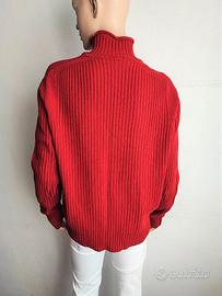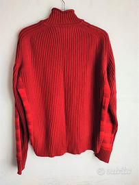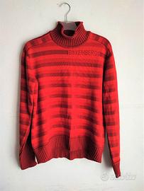 Maglia donna collo alto Bikkembergs, davanti a righe, dietro tinta unita e canettata, tessuto misto lana, made in Italy, in ottime condizioni, taglia L, spalle cm 44, manica cm 65, lunghezza cm 65