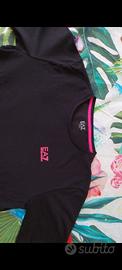 Maglia nera a maniche corte EA7 Emporio Armani. - Nuova senza cartellino - Taglia S - 69% cotone - 32% poliestere - Dettagli in colore fuxia