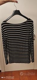 Maglia nera con righe sottili colore avorio in viscosa 95% e 5% elastane chiusura laterale con 4 bottoncini neri discreti Taglia M Conbipel