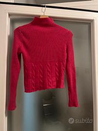 Maglia a costine in lana con collo alto e maniche lunghe.
