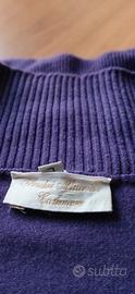 maglia donna viola in chasmir 100% scollo a v André Maurice ,doppio collo