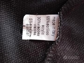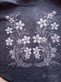maglia donna invernale tg 50 made in Italy, 65% acrilico, 30 % viscosa e 5 % elastina. Con fiori bianchi e brillantini smerigliati. Usato come nuovo