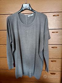 Maglia donna girocollo grigio chiaro, lunga, leggera, in viscosa e cotone, maniche lunghe, tg. unica, modello comodo, ottima vestibilità. Indossata poche volte, in ottime condizioni.