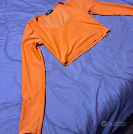 Maglia crop top donna arancione taglia unica in buone condizioni