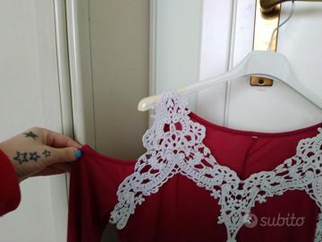 Maglia donna, rossa in cotone con pizzo e spalle scoperte, tg unica. In ottimo stato, vendo a 2 euro.