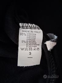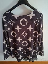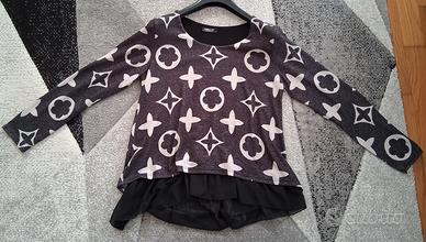 maglia doppia a maniche lunghe, la parte sotto è materiale simile chiffon, vestibilità morbida. Fantasia colore nero, bianco e fili dorati. tg. L