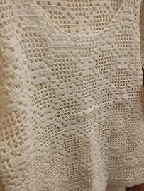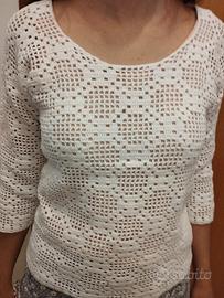 Vendo maglia donna uncinetto di cotone, colore bianco, maniche 3/4, motivo geometrico, taglia S