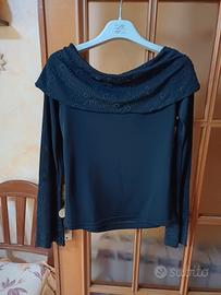 maglia elasticizzata con scollo a barca e maniche decorate con strass tono su tono +spolverino elegante tg 46. vendibili separatamente