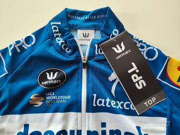 Maglia estiva Quick Step Pro Taglia S-42 Donna (XS uomo) Nuovo Maglia estiva maniche taglio vivo, tre tasche sul retro, fondo siliconato per vestibilità race. Nuovo con etichette e busta, misure in foto. Spedizione combinata con altri articoli #sdt o possibile ritiro a Roma Metro A Baldo degli Ubaldi. #vermarc #ciclismo #specialized #quickstep #wolfpack #veló # sdt