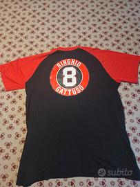 Vendo maglia di Gennaro Gattuso, ex giocatore del Milan numero 8. Maglietta perfetta per tifosi del Milan, appassionati di calcio vintage e collezionisti. Fronte con stampa del bulldog e retro numero 8.