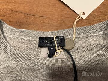 Maglia girocollo Armani Jeans con dettaglio sulla schiena, grigio perla, maniche lunghe