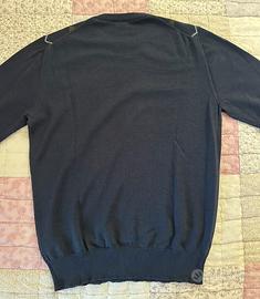 Maglia girocollo Aspesi fronte a rombi taglia 48 retro blu 100% lana vergine.
