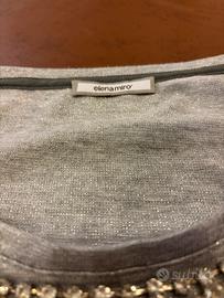 Maglia in lana e lurex con gioiello girocollo in zirconi incorporato incorporato Colore grigio chiaro indossata solo due volte. come nuova. Marca Elena Mirò.