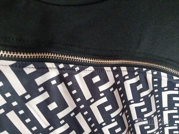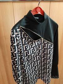 Vendo maglia nera/beige con zip apribile sullo scollo, tessuto lucido TG. S.