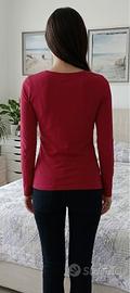 Bellissima maglia a maniche lunghe GUESS Los Angeles in cotone rosso vibrante, perfetta per chi cerca un capo basic ma con carattere. La vestibilità è slim e valorizza molto la figura, mentre lo scollo è reso unico da una pioggia di strass neri e dall'iconico logo argentato del brand. Il tessuto è 100% cotone, morbido e di ottima qualità. Il capo è in condizioni eccellenti, praticamente come nuovo. Essendo una taglia XS, veste aderente (lunghezza circa 62 cm, ascella-ascella 38 cm). Un pezzo versatile, ideale sia per il giorno che per la sera. Spedisco subito!