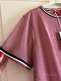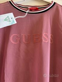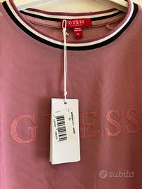 Maglia donna marca Guess, nuova con cartellino, originale, taglia XL, materiale poliestere e elastane, colore rosa antico, trasparente, mai indossata. Prezzo 27 €.