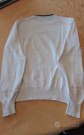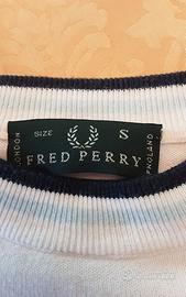 Maglia in cotone bianco con bordo azzurro sul collo e logo Fred Perry. Taglia S. Ben tenuta, lavata e sanificata, indossata pochissimo.