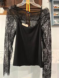 Maglia in pizzo con la sua cannottiera in microfibra Liujo nera. Completa dí confezione originale.Nuova con cartellino mai indossata.Taglia L